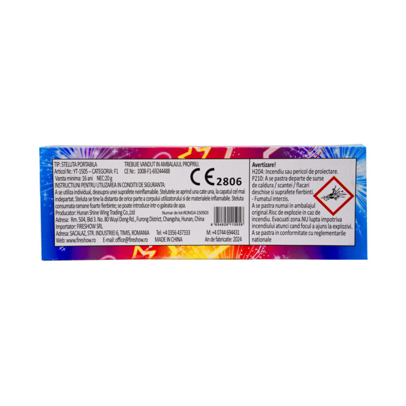 Spectacolul suprem pentru evenimente de excepție!Dimensiunea generoasă de 20 cm asigură un impact vizual impresionant, perfect pentru torturi mari, evenimente corporate sau petreceri cu mulți invitați. Cascada de scântei strălucitoare se înalță spectaculos, captând atenția tuturor și transformând momentul aniversar într-o experiență cinematică.